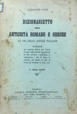 DIZIONARIETTO DELLE ANTICHITÀ ROMANE E GRECHE A. FABRE U130