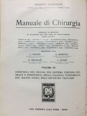 ALESSANDRI MANUALE DI CHIRURGIA VOL. III CHIRURGIA DEL CRANIO... 1933 E113