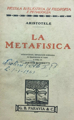 LA METAFISICA ARISTOTELE P. EUSEBIETTI PARAVIA 1940 O115
