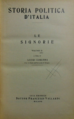 STORIA POLITICA D'ITALIA LE SIGNORIE VOL.II