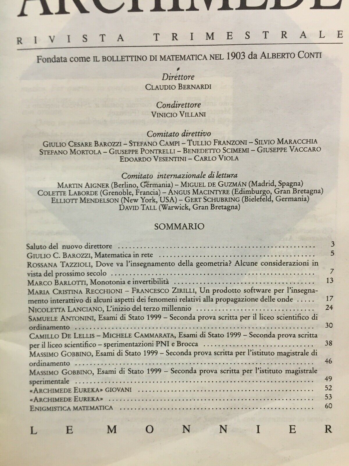 ARCHIMEDE RIVISTA DI MATEMATICHE PURE E APPLICATE GENNAIO MARZO 1999 J740