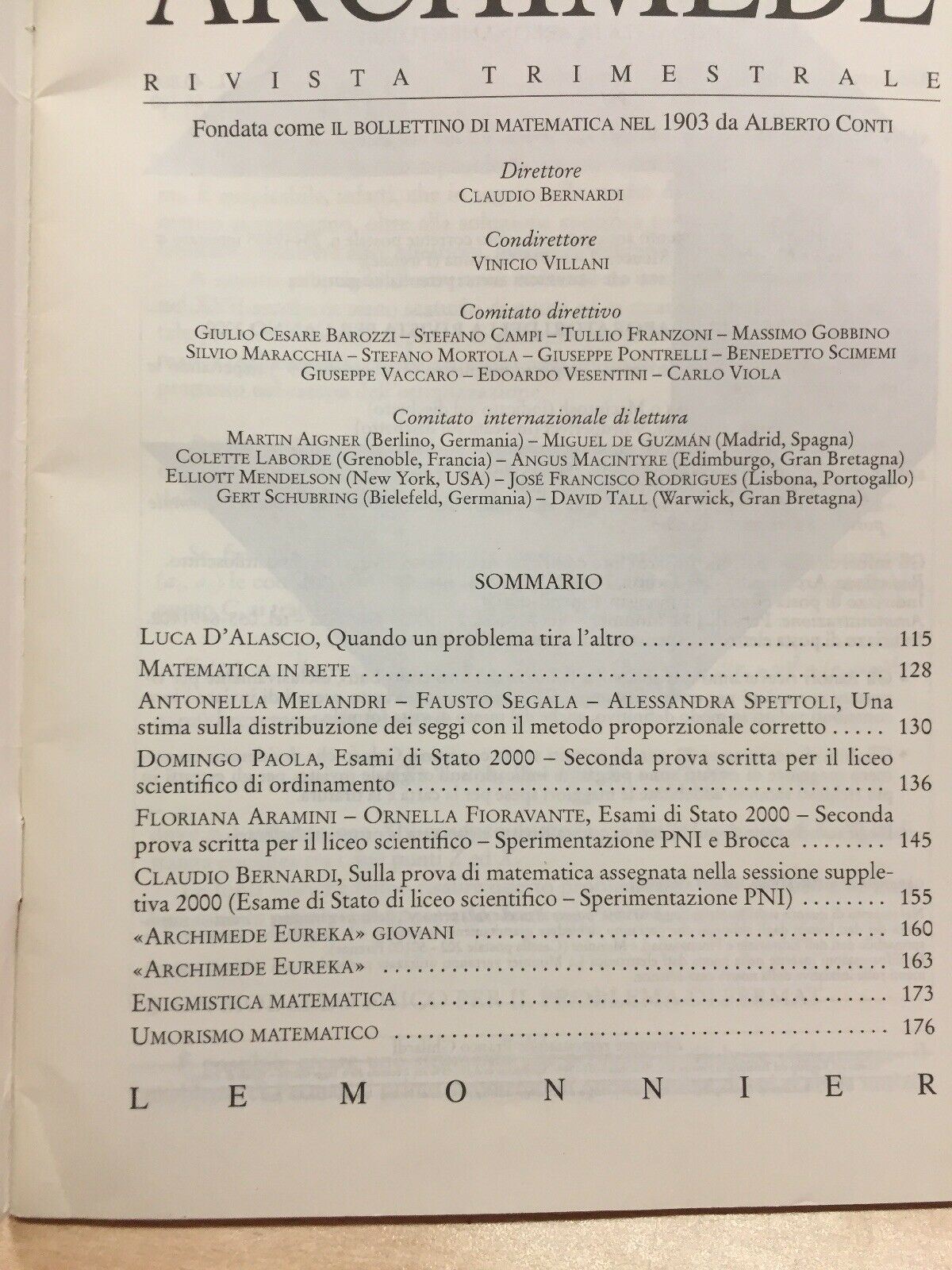 ARCHIMEDE RIVISTA DI MATEMATICHE PURE E APPLICATE