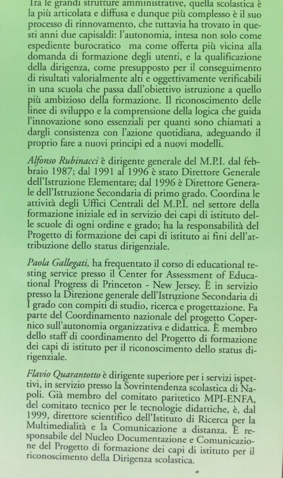 ALFONSO RUBINACCI. PAOLA GALLEGATI. FLAVIO QUARANTOTTO DIRIGENZA E DIRIGENTI EDITRICE LA SCUOLA METODI DI PAGAMENTO PayPal Bonifico TEMPI DI SPEDIZIONE La spedizione parte entro 24 ore dall'accredito del pagamento TEMPI DI CONSEGNA I tempi di consegna dipendono dalle Poste Italiane e i venditori non ne hanno alcun controllo infatti la valutazione dettagliata richiesta da ebay si riferisce ai tempi di SPEDIZIONE e non di CONSEGNA FEEDBACK E VALUTAZIONI Anche la valutazione dettagliata (quella da 1 a 5 stelline) è molto importante. Secondo gli standard di ebay ricevere una valutazione da 1 a 4 stelline significa ricevere una valutazione Negativa. Vi chiediamo pertanto se siete stati soddisfatti del nostro servizio di rilasciare una valutazione dettagliata di 5 stelline in tutti e quattro i campi richiesti FOREIGN BUYERS ASK FOR SHIPPING COSTS PER PIU' OGGETTI ACQUISTATI SPEDIZIONE UNICA QUINDI LE SPESE NON AUMENTANO !!! Prima di effettuare il pagamento attendere la mail con l'importo complessivo - RACCOMANDATA 5€ (Consigliata !!!) Questa spedizione è sicura al 100% si riceve in 3gg/5gg - PACCO ORDINARIO - POSTA ORDINARIA "piego di libri" 2 00€ (Senza ricevuta) Se scegliete questa spedizione impiega 10gg/15gg senza ricevuta non ci riteniamo responsabili per eventuali smarrimenti ACQUISTA x 100 00€ LE SPESE DI SPEDIZIONE SARANNO GRATIS !!! - Collezione: Libri e Riviste - Tags : "Saggistica, Didattici Corsi Dizionari"