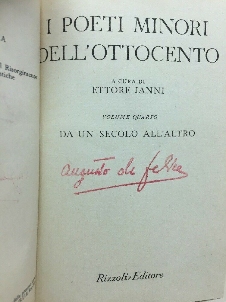 I POETI MINORI DELL’OTTOCENTO COMMENTO E. JANNI B U. R. 1958 METODI DI PAGAMENTO PayPal Bonifico TEMPI DI SPEDIZIONE La spedizione parte entro 24 ore dall'accredito del pagamento TEMPI DI CONSEGNA I tempi di consegna dipendono dalle Poste Italiane e i venditori non ne hanno alcun controllo infatti la valutazione dettagliata richiesta da ebay si riferisce ai tempi di SPEDIZIONE e non di CONSEGNA FEEDBACK E VALUTAZIONI Anche la valutazione dettagliata (quella da 1 a 5 stelline) è molto importante. Secondo gli standard di ebay ricevere una valutazione da 1 a 4 stelline significa ricevere una valutazione NON positiva. Vi chiediamo pertanto se siete stati soddisfatti dal nostro servizio di rilasciare una valutazione dettagliata di 5 stelline in tutti e quattro i campi richiesti FOREIGN BUYERS ASK FOR SHIPPING COSTS PER PIU' OGGETTI ACQUISTATI SPEDIZIONE UNICA QUINDI LE SPESE NON AUMENTANO !!! Pria di effettuare il pagamento attendefe la nostra mail col l'importo complessivo - RACCOMANDATA 5€ (Consigliata !!!) Questa spedizione è sicura al 100% si riceve in 3gg/5gg - PACCO ORDINARIO=POSTA ORDINARIA "piego libri" 2 00€ (Senza ricevuta) Se scegliete questa spedizione impiega 10gg/15gg senza ricevuta non ci riteniamo responsabili per eventuali smarrimenti ACQUISTA x 100 00€ LE SPESE DI SPEDIZIONE SARANNO GRATIS !!! - Collezione: Libri e Riviste - Tags : "Narrativa, Romanzi Poesie e Prosa"
