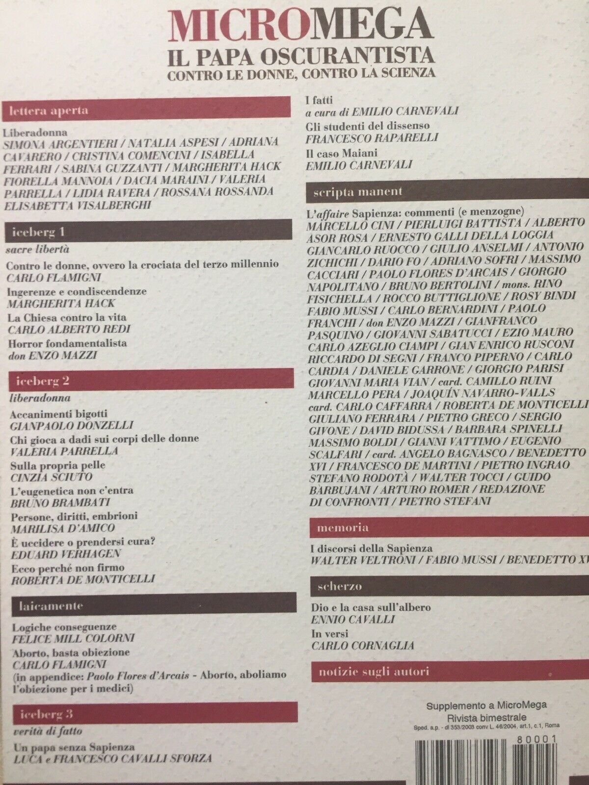IL PAPA OSCURANTISTA CONTRO LE DONNE CONTRO LA SCIENZA MICROMEGA U610