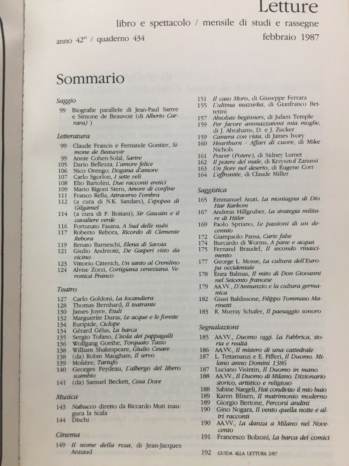 LETTURE FEBBRAIO 1987 N803