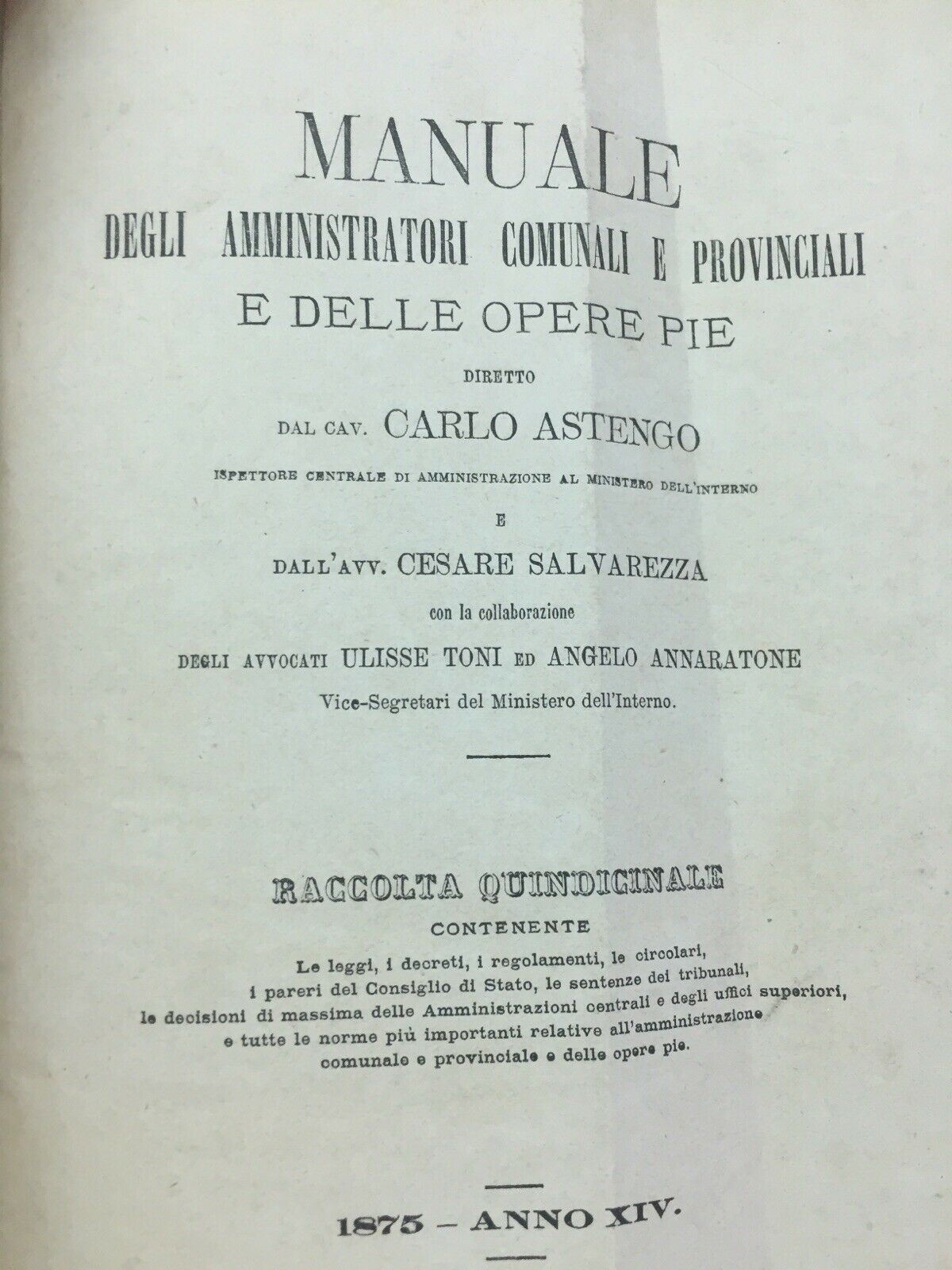 MANUALE DEGLI AMMINISTRATORI COMUNALI E PROVINCIALI E DELLE OPERE PIE 1875 U698