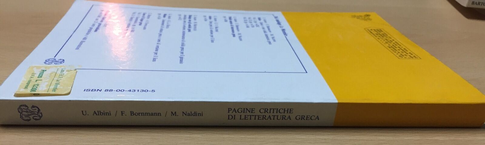 PAGINE CRITICHE DI LETTERATURA GRECA U.ALBINI F. BORNMANN M.NALDINI EDITORE:LE MONNIER GENERE: STORIA SEGNI D’USO MODALITÀ DI PAGAMENTO PayPal Bonifico TEMPI DI SPEDIZIONE La spedizione parte entro 24 dal pagamento TEMPI DI CONSEGNA I tempi di consegna dipendono dalle Poste Italiane e i venditori non ne hanno alcun controllo infatti la valutazione dettagliata richiesta da ebay si riferisce ai tempi di SPEDIZIONE e non di CONSEGNA FEEDBACK E VALUTAZIONI Anche la valutazione dettagliata (quella da 1 a 5 stelline) è molto importante. Secondo gli standard di ebay ricevere una valutazione da 1 a 4 stelline significa ricevere una valutazione Negativa. Vi chiediamo pertanto se siete stati soddisfatti del nostro servizio di rilasciare una valutazione dettagliata di 5 stelline in tutti e quattro i campi richiesti FOREIGN BUYERS ASK FOR SHIPPING COSTS PER PIU' OGGETTI ACQUISTATI SPEDIZIONE UNICA QUINDI LE SPESE NON AUMENTANO !!! Prima di effettuare il pagamento attendere la mail con l'importo complessivo - RACCOMANDATA 5€ (Consigliata !!!) Questa spedizione è sicura al 100% si riceve in 3gg/5gg - PACCO ORDINARIO - POSTA ORDINARIA "piego di libri" 2 00€ (Senza ricevuta) Se scegliete questa spedizione impiega 10gg/15gg senza ricevuta non ci riteniamo responsabili per eventuali smarrimenti ACQUISTA x 100 00€ LE SPESE DI SPEDIZIONE SARANNO GRATIS !!! - Collezione: Libri e Riviste - Tags : "Saggistica"