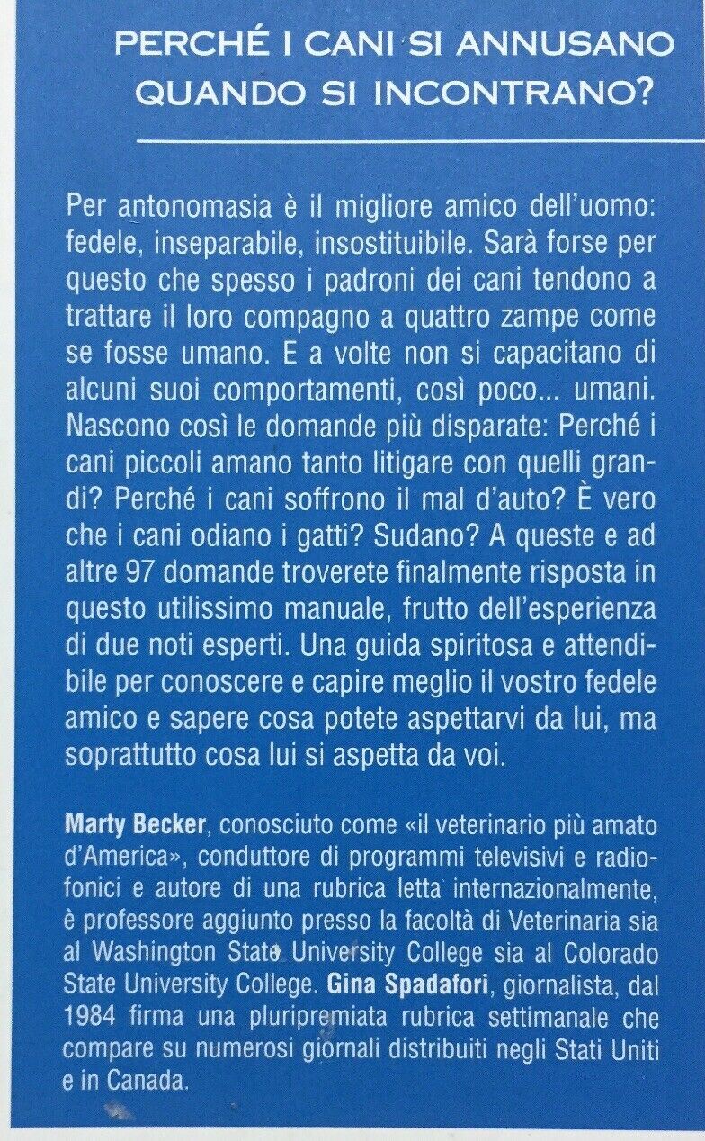MARTY BECKER E GINA SPADAFORI PERCHE’ I CANI SI ANNUSANO QUANDO SI INCONTRANO? TEA METODI DI PAGAMENTO PayPal Bonifico TEMPI DI SPEDIZIONE La spedizione parte entro24 ore dall'accredito del pagamento TEMPI DI CONSEGNA I tempi di consegna dipendono dalle Poste Italiane e i venditori non ne hanno alcun controllo infatti la valutazione dettagliata richiesta da ebay si riferisce ai tempi di SPEDIZIONE e non di CONSEGNA FEEDBACK E VALUTAZIONI Anche la valutazione dettagliata (quella da 1 a 5 stelline) è molto importante. Secondo gli standard di ebay ricevere una valutazione da 1 a 4 stelline significa ricevere una valutazione Negativa. Vi chiediamo pertanto se siete stati soddisfatti del nostro servizio di rilasciare una valutazione dettagliata di 5 stelline in tutti e quattro i campi richiesti FOREIGN BUYERS ASK FOR SHIPPING COSTS PER PIU' OGGETTI ACQUISTATI SPEDIZIONE UNICA QUINDI LE SPESE NON AUMENTANO !!! Prima di effettuare il pagamento attendere la mail con l'importo complessivo - RACCOMANDATA 5€ (Consigliata !!!) Questa spedizione è sicura al 100% si riceve in 3gg/5gg - PACCO ORDINARIO - POSTA ORDINARIA "piego di libri" 2 00€ (Senza ricevuta) Se scegliete questa spedizione impiega 10gg/15gg senza ricevuta non ci riteniamo responsabili per eventuali smarrimenti ACQUISTA x 100 00€ LE SPESE DI SPEDIZIONE SARANNO GRATIS !!! - Collezione: Libri e Riviste - Tags : "Saggistica"