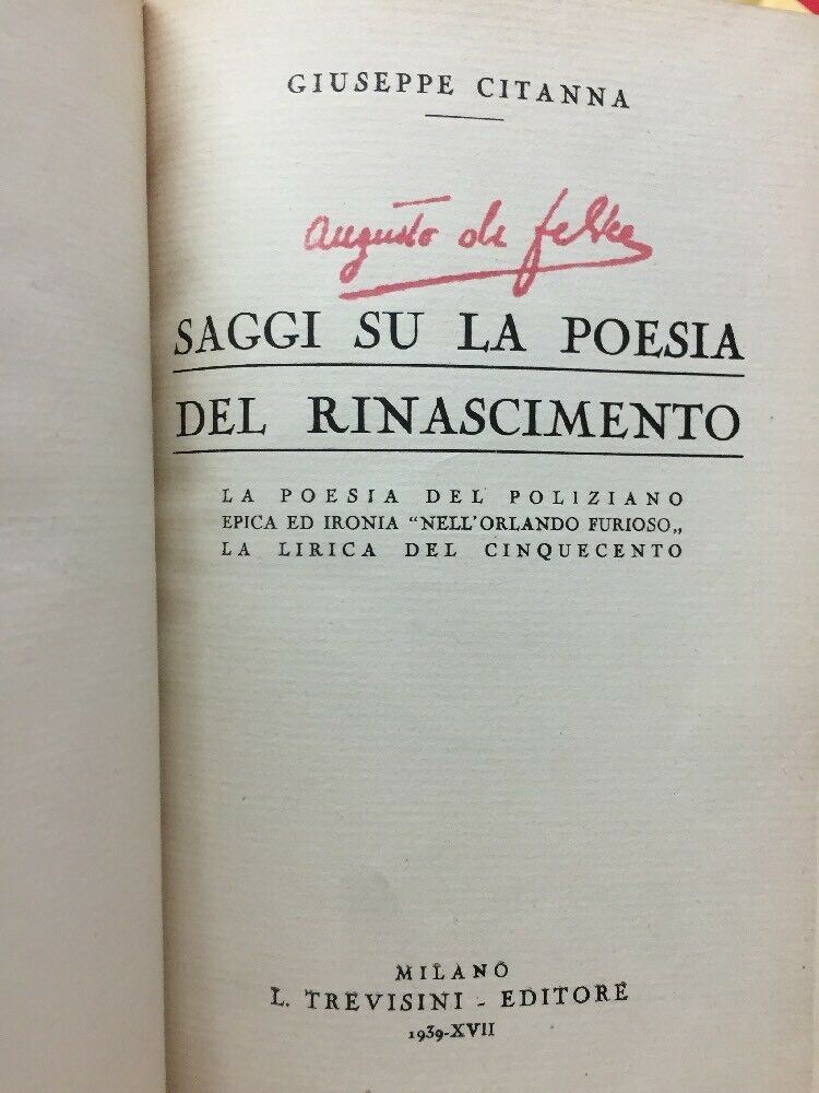 SAGGI SU LA POESIA DEL RINASCIMENTO G. CITANNA 1939 C56