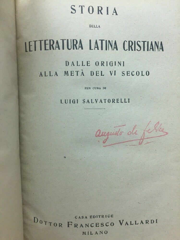 STORIA DELLA LETTERATURA LATINA CRISTIANA DALLE ORIGINI ALLA METÀ DEL VI SECOLO