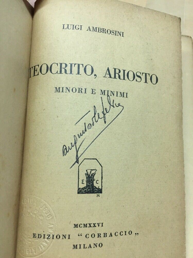 LUIGI AMBROSINI TEOCRITO ARIOSTO. MINORI E MINIMI CULTURA CONTEMPORANEA CORBACCIO 1926 METODI DI PAGAMENTO PayPal Bonifico TEMPI DI SPEDIZIONE La spedizione parte entro 24 ore dall'accredito del pagamento TEMPI DI CONSEGNA I tempi di consegna dipendono dalle Poste Italiane e i venditori non ne hanno alcun controllo infatti la valutazione dettagliata richiesta da ebay si riferisce ai tempi di SPEDIZIONE e non di CONSEGNA FEEDBACK E VALUTAZIONI Anche la valutazione dettagliata (quella da 1 a 5 stelline) è molto importante. Secondo gli standard di ebay ricevere una valutazione da 1 a 4 stelline significa ricevere una valutazione NON positiva. Vi chiediamo pertanto se siete stati soddisfatti dal nostro servizio di rilasciare una valutazione dettagliata di 5 stelline in tutti e quattro i campi richiesti FOREIGN BUYERS ASK FOR SHIPPING COSTS PER PIU' OGGETTI ACQUISTATI SPEDIZIONE UNICA QUINDI LE SPESE NON AUMENTANO !!! Pria di effettuare il pagamento attendefe la nostra mail col l'importo complessivo - RACCOMANDATA 5€ (Consigliata !!!) Questa spedizione è sicura al 100% si riceve in 3gg/5gg - PACCO ORDINARIO=POSTA ORDINARIA "piego libri" 2 00€ (Senza ricevuta) Se scegliete questa spedizione impiega 10gg/15gg senza ricevuta non ci riteniamo responsabili per eventuali smarrimenti ACQUISTA x 100 00€ LE SPESE DI SPEDIZIONE SARANNO GRATIS !!! - Collezione: Libri e Riviste - Tags : "Saggistica"