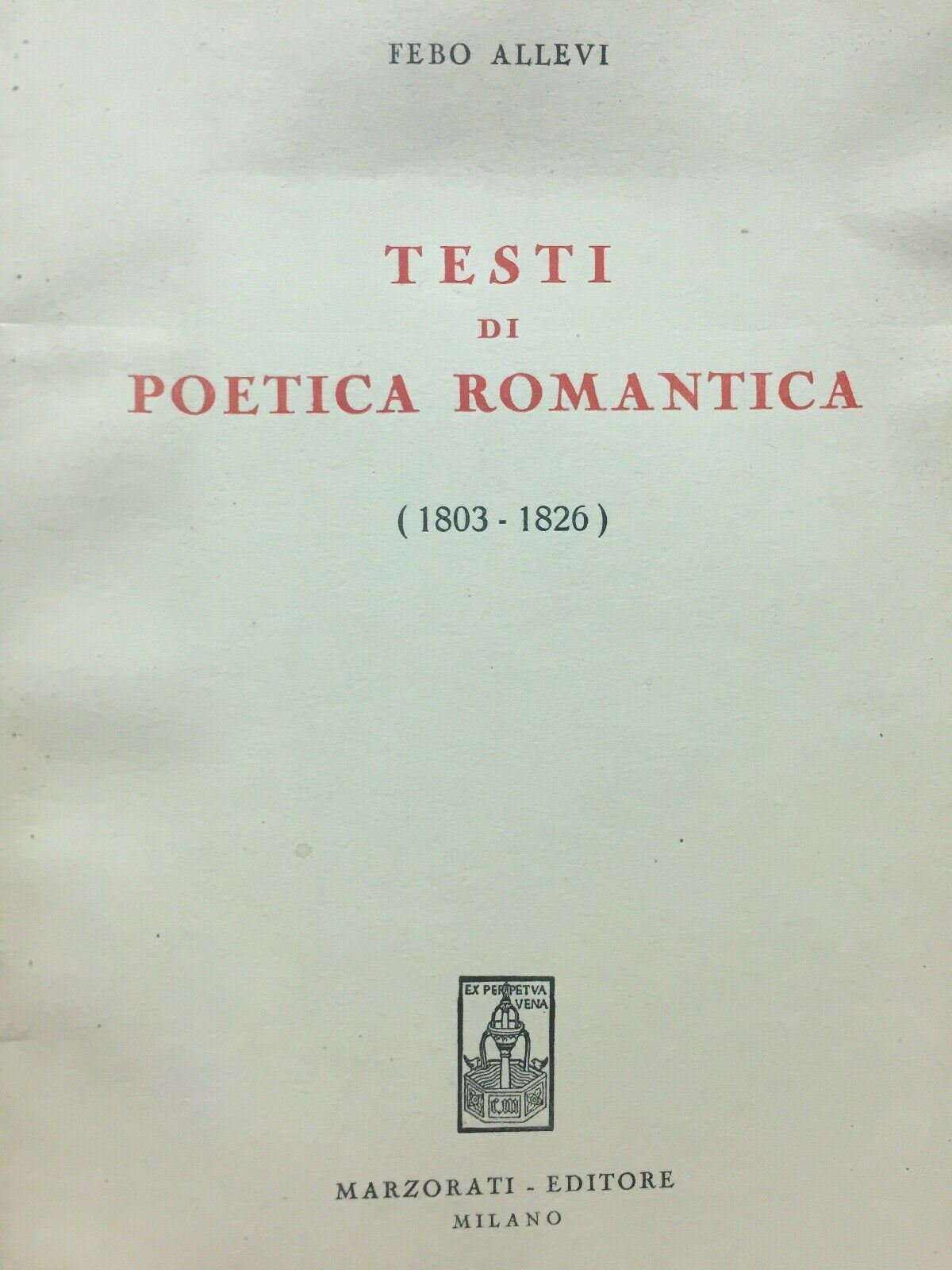 TESTI DI POETICA ROMANTICA F. ALLEVI MARZORATI 1960 M207