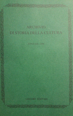 ARCHIVIO DI STORIA DELLA CULTURA ANNO XIX 2006