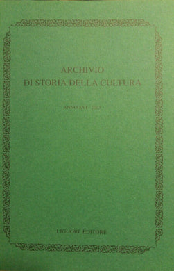 ARCHIVIO DI STORIA DELLA CULTURA ANNO XVI 2003