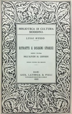 • RITRATTI E DISEGNI STORICI DALL’ALFIERI AL LEOPARDI L. RUSSO LATERZA 1953 O157