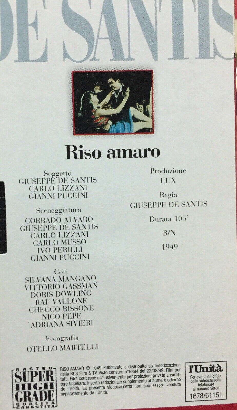 VHS RISO AMARO L’UNITA’ METODI DI PAGAMENTO PayPal Bonifico TEMPI DI SPEDIZIONE La spedizione parte entro2 ore dall'accredito del pagamento TEMPI DI CONSEGNA I tempi di consegna dipendono dalle Poste Italiane e i venditori non ne hanno alcun controllo infatti la valutazione dettagliata richiesta da ebay si riferisce ai tempi di SPEDIZIONE e non di CONSEGNA FEEDBACK E VALUTAZIONI Anche la valutazione dettagliata (quella da 1 a 5 stelline) è molto importante. Secondo gli standard di ebay ricevere una valutazione da 1 a 4 stelline significa ricevere una valutazione Negativa. Vi chiediamo pertanto se siete stati soddisfatti del nostro servizio di rilasciare una valutazione dettagliata di 5 stelline in tutti e quattro i campi richiesti FOREIGN BUYERS ASK FOR SHIPPING COSTS PER PIU' OGGETTI ACQUISTATI SPEDIZIONE UNICA QUINDI LE SPESE NON AUMENTANO !!! Prima di effettuare il pagamento attendere la mail con l'importo complessivo - RACCOMANDATA 5€ (Consigliata !!!) Questa spedizione è sicura al 100% si riceve in 3gg/5gg - PACCO ORDINARIO - POSTA ORDINARIA "piego di libri" 2 00€ (Senza ricevuta) Se scegliete questa spedizione impiega 10gg/15gg senza ricevuta non ci riteniamo responsabili per eventuali smarrimenti ACQUISTA x 100 00€ LE SPESE DI SPEDIZIONE SARANNO GRATIS !!! - Collezione: Musica - Cinema - Teatro - Tags : "Vhs"